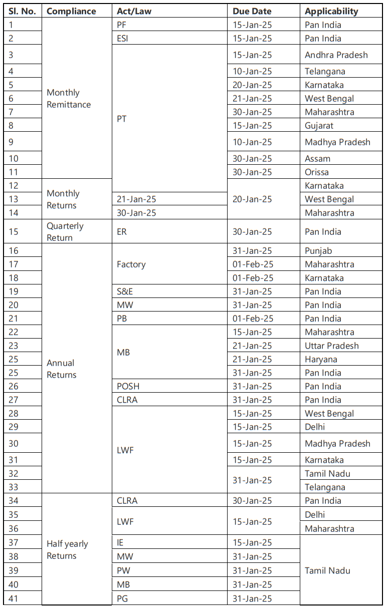 COMPLIANCES FOR THE MONTH OF JANUARY 2025